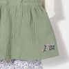 - Robe chasuble coupe évasée, bretelles larges, taille élastiquée et détails brodés