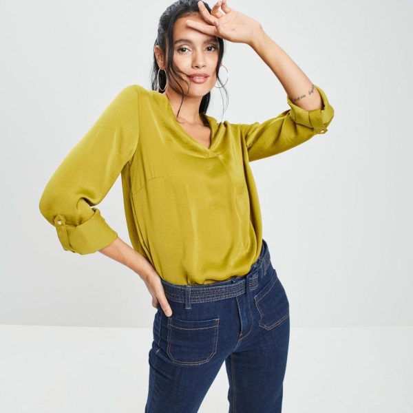- Ourlets retroussés avec pattes boutonnées aux manches