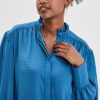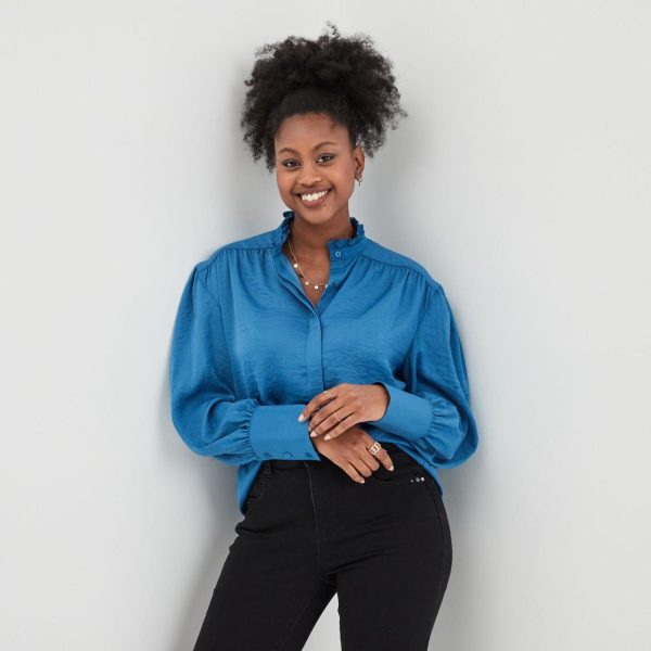 LH Blouse Col Montant Manches Bouffantes Bleu Femme BLEU | Femme La Halle Chemise, Blouse