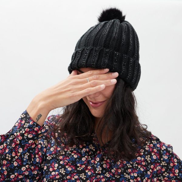 LH Bonnet à Pompon Avec Strass Noir Femme NOIR | Femme La Halle Chapeau, Casquette, Bonnet