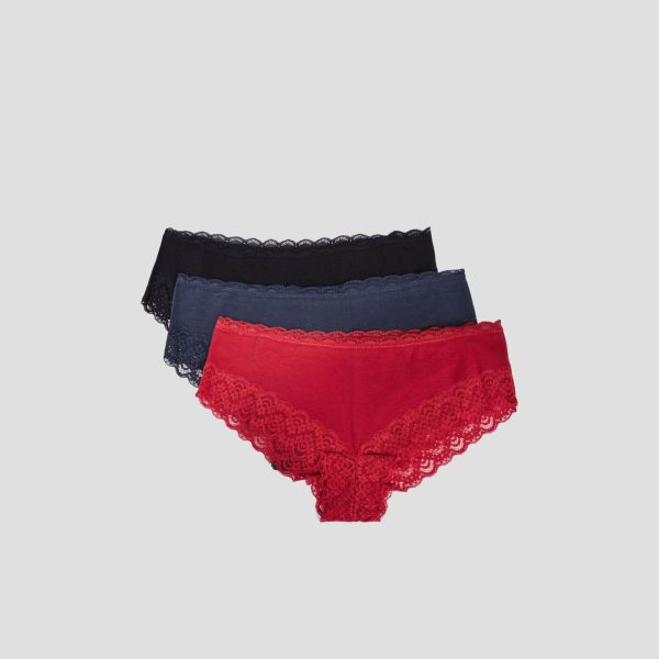 LH Lot Shortys En Coton Avec Dentelle Bleu Gris Femme BLEU GRIS | Femme La Halle Lots Lingerie
